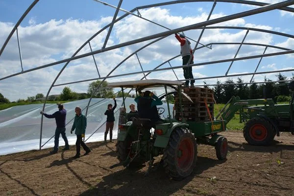 Die Mitglieder sind auf ihrem Hof willkommen und können mithelfen und Einblicke in den Gemüse- und Obstbau bekommen. Besonders die Ernte-Tage mit dem gemeinsamen Frühstück sind ein Higlight. Bei Aktionstagen und größeren Projekten wie z.B. Aufbau eines Folientunnels kommen viele Mitglieder zusammen und es wird in der Gemeinschaft gearbeitet. Für eigene Projekte können AGs gegründet werden, die den Hof als Plattform nutzen und auch von der Koop finanziell unterstützt werden können.